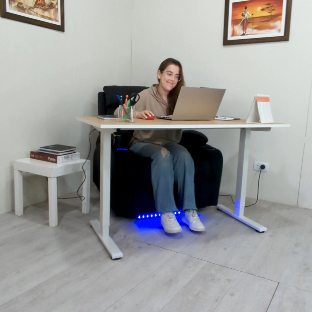 Ajustás con un solo toque la posición que más se adapte a tu cuerpo y rutina. Ideal para cambiar de postura sin interrumpir tu trabajo.